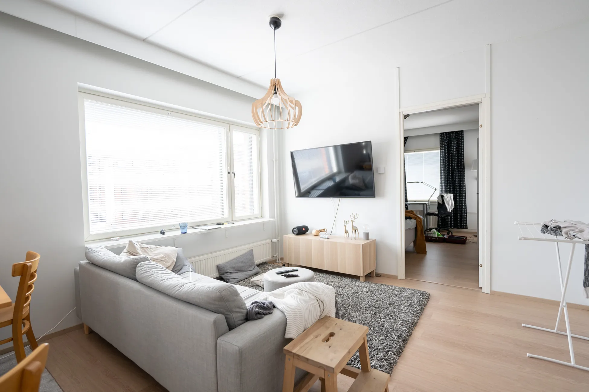 Olohuone on tilava ja valoisa.