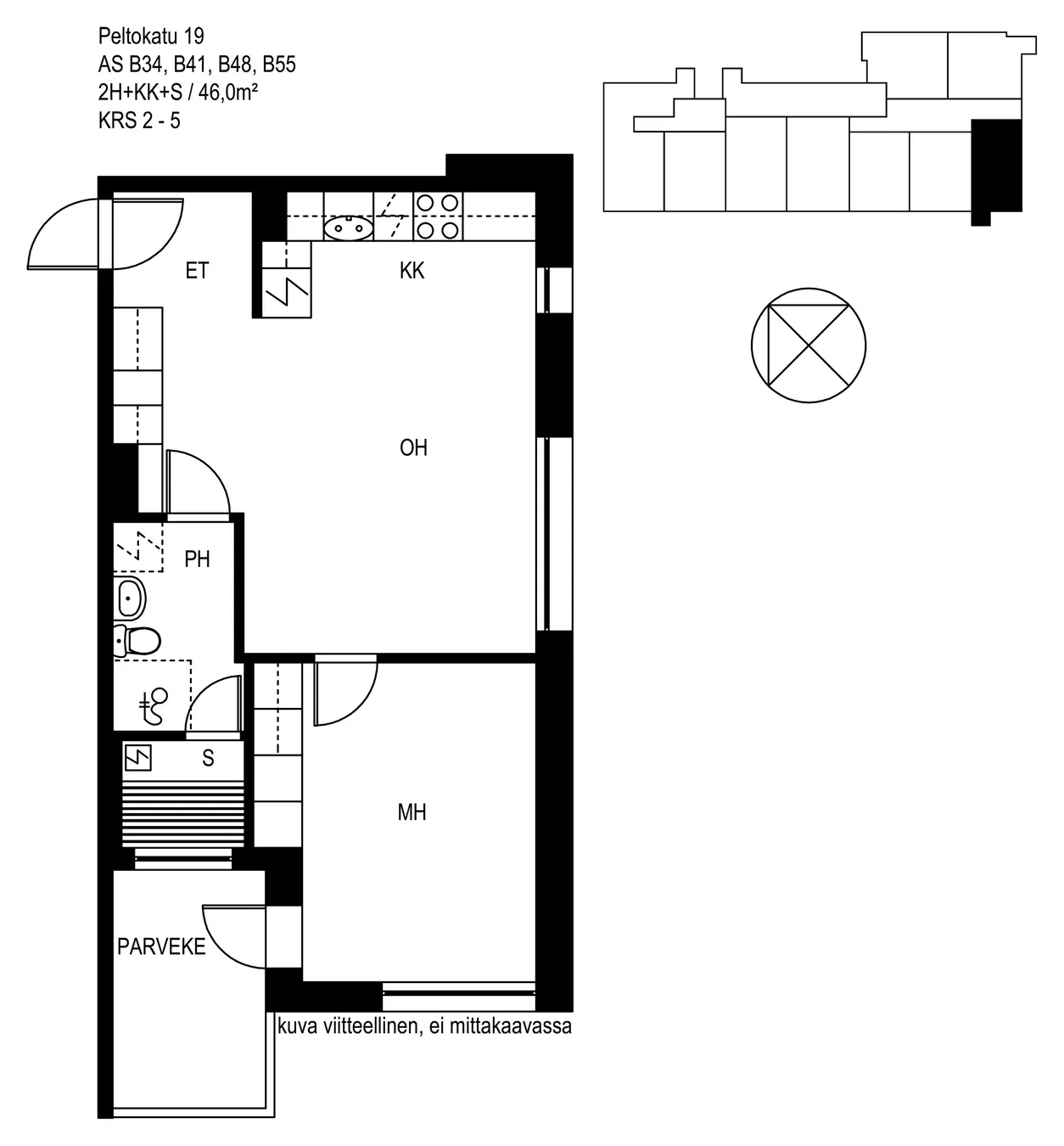 Asuntoon tulvii valoa kahdesta suunnasta ja parvekkeelta avautuu avarat näkymät etelään päin. Asunto on siis tilava 3. kerroksen kulma-asunto.